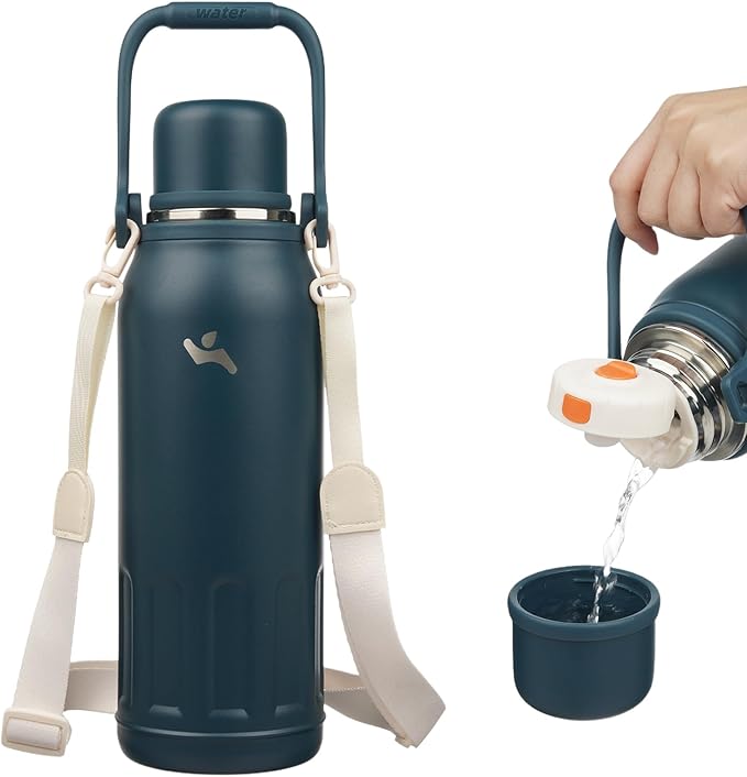 - Furnished with a portable handle and an adjustable cross-body shoulder strap, the insulated water bottle is comfortable and easy to carry any where. Perfect Thermo for outdoor adventures and daily commutes