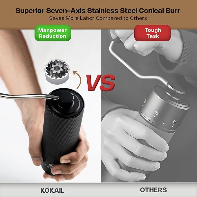 - Precision Grinding with 7-Star Burr – Enjoy consistently ground coffee with our premium manual coffee grinder featuring a high-quality 7-star stainless steel conical burr for better durability and performance.