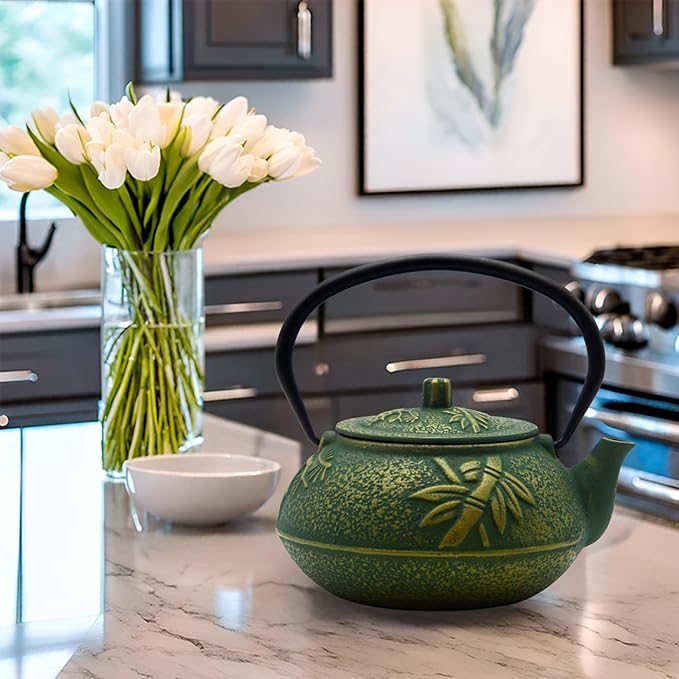 - The cast iron kettle have a removable stainless steel mesh infuser for steeping loose leaf teas.