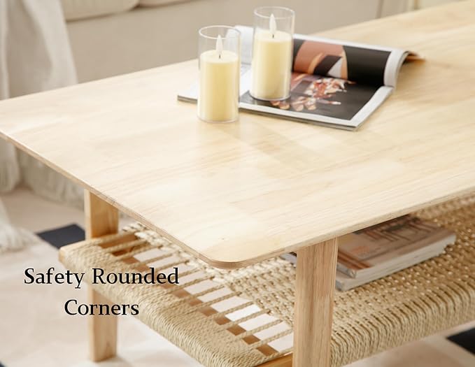 - [Embrace Boho Style]Combining solid wood with a pure handmade rope woven shelf, this coffee table is a nod to bohemian aesthetics, breathing nature, texture, and good vibes into your space. It's an artistic statement that enhances your space.