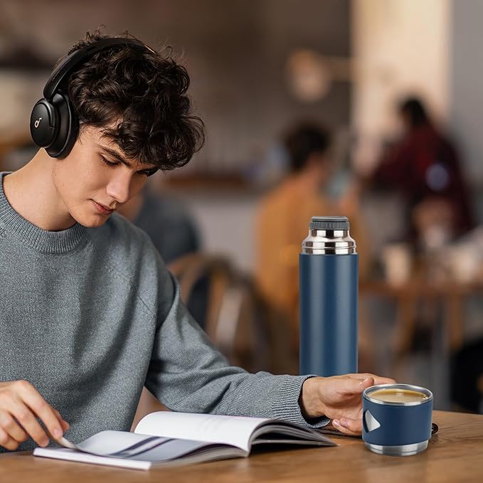 Stainless Steel Thermo 700ml/23.7oz Vacuum Insulated Bottle with Cup for Coffee Hot drink and Cold drink water flask.(Blue,Single)