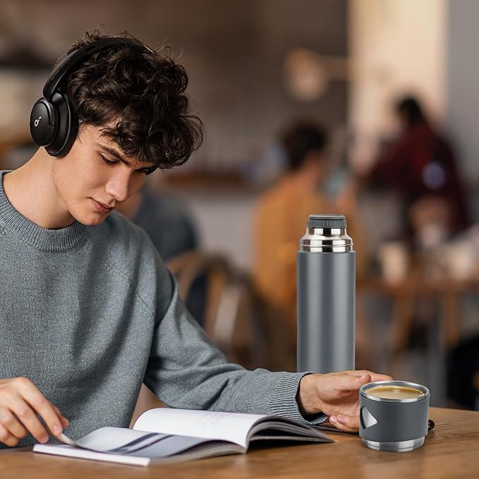 Stainless Steel Thermo 700ml/23.7oz Vacuum Insulated Bottle with Cup for Coffee Hot drink and Cold drink water flask.(Gray,Set)