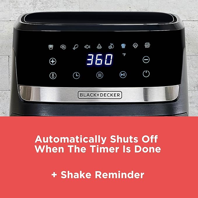 BLACK+DECKER Purifry 4QT Air Fryer, Crispy Deep Fried Taste without the Fat, Plus Bake, Dehydrate, and Keep Food Warm, Digital Touchscreen and Auto Shut-Off