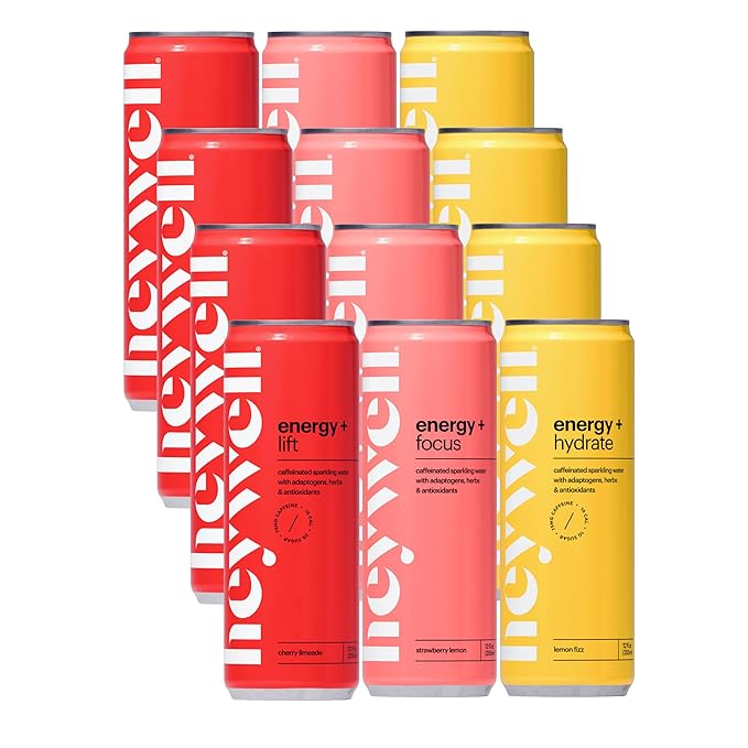 Heywell Sparkling Adaptogenic, Water Energy and Focus, Energy Variety Pack, 12 Fluid Ounce (Pack of 12) - Caffeinated, Organic, Non GMO, Vegan, Gluten Free, Dairy Free