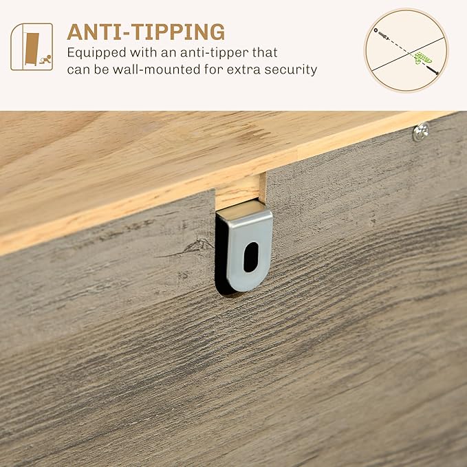 - Thoughtful Workmanship: Made of a quality engineered wood frame, our sideboard storage cabinet is fit for daily use and is easy to maintain. An anti-tipping design on the back of the cabinet stops it from falling over.