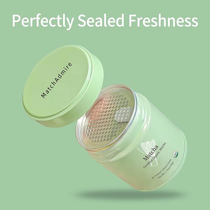 MatchAdmire Premium First Harvest USDA Certified Organic Green Tea Matcha Powder, Rich Flavor, 100% Vegan with No Fillers, Radiation-Free (50g Culinary Grade Matcha)