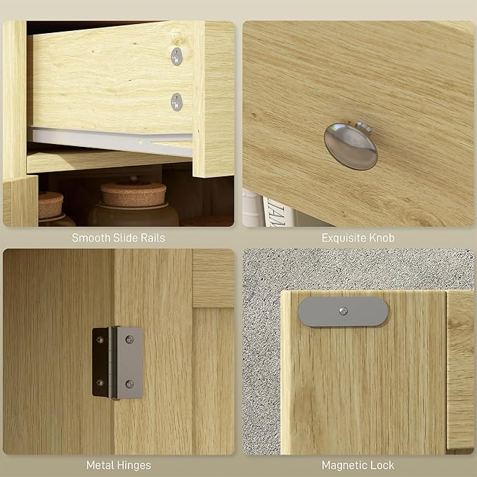 - Thoughtful Workmanship: Made of a quality engineered wood frame, our sideboard storage cabinet is fit for daily use and is easy to maintain. An anti-tipping design on the back of the cabinet stops it from falling over.