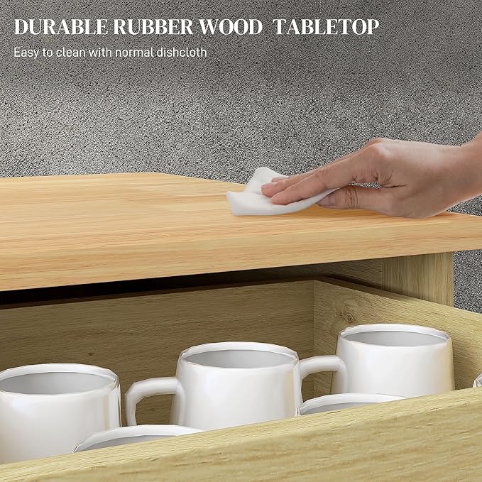 - Practical Workspace: With a natural rubber wood countertop, our kitchen cabinet offers a solid and easy-to-clean workspace that's great for all kinds of projects.