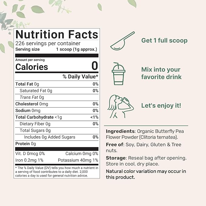 - Flavor : Organic Butterfly Pea Powder