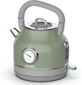 - ELEGANT DESIGN FOR EFFORTLESS BREWING. This electric kettle combines vintage aesthetics with modern features, including a retro thermometer to prepare the perfect temperature for various beverages, enhancing the flavor and enjoyment of your drinks. The ergonomic, heat-resistant and foldable handle ensures comfortable, safe pouring and storage.