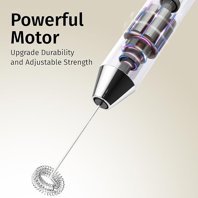 - POWERFUL 2-SPEED MOTOR: This frother features a robust motor that quickly creates rich, velvety foam. With two speed options—normal for gentle frothing and turbo for intense, thick foam—you can customize your froth to suit any drink, from lattes to protein shakes.