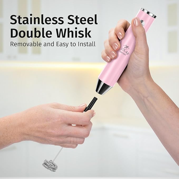 Zulay Kitchen Lux Rechargeable Milk Frother Handheld - Powerful 2-Speed Motor, Fully Waterproof, 2000mAh Battery - Drink Mixer For Latte, Cappuccino, Matcha, Protein Powder - Pink