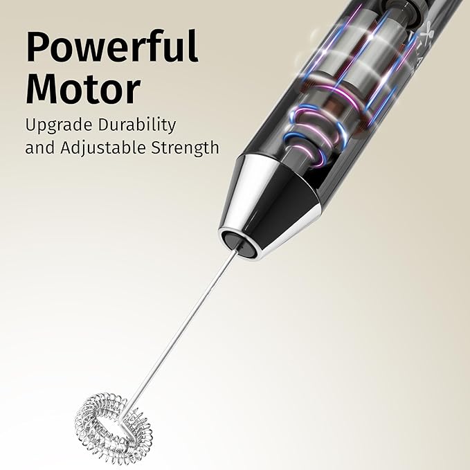 - POWERFUL 2-SPEED MOTOR: This frother features a robust motor that quickly creates rich, velvety foam. With two speed options—normal for gentle frothing and turbo for intense, thick foam—you can customize your froth to suit any drink, from lattes to protein shakes.