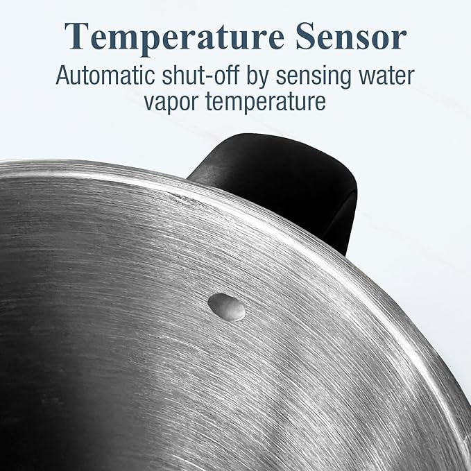 - ใAuto Shut-Off and Boil-Dry ProtectionใThis tea kettle electric featured with boil-dry protection and auto shut-off, will automatically switch off if there isn't enough water inside or when the water reaches the boiling point. After shutdown, it enters standby mode, ready for your next boil, making it a dependable appliance for everyday use.