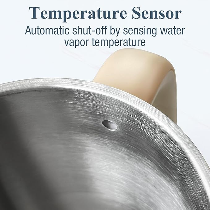 - ใAuto Shut Off with Boil-Dry Protectionใ~ Experience peace of mind with the electric kettle's auto shut off feature and boil-dry protection. Simply ensure the lid is covered before boiling. This tea kettle automatically turns off when water reaches boiling point or when no water is detected, preventing overheating and boiling dry. After shutdown, it enters standby mode, ready for your next boil