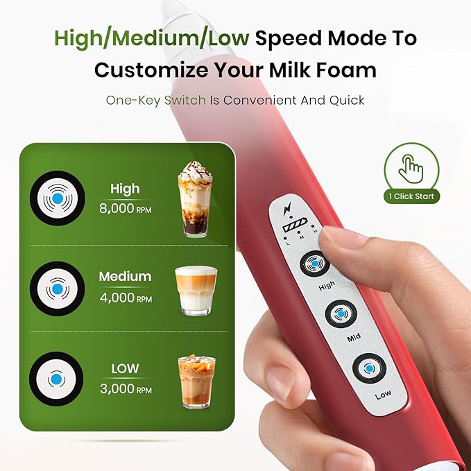 - ⭐The handheld electric whisk has three settings for high, medium and low, allowing you to create foam as you like. Designed specifically for coffee cream, it blends silently in 15-20 seconds, allowing you to enjoy a smooth drink instantly. Easy to operate, and delicious.