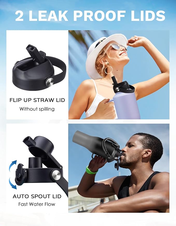 - LEAK-PROOF STRAW LID & AUTO SPOUT LID: This stainless steel tumbler thermal cup with straw and chug lid, both BPA-free, leak-proof and one-hand conctrol design, great car must have things!