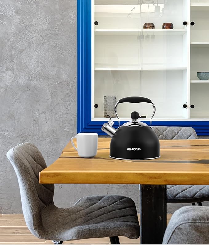 - ✔Ergonomic Designed Handle: Whistling teapot with an ergonomically handle, non-slip design makes pouring and filling easier, also comfortable to hold.(Note: please use a protect-holder in your hand to touch the handle if the water has just reached boil) Also it is foldable, save space for storage.