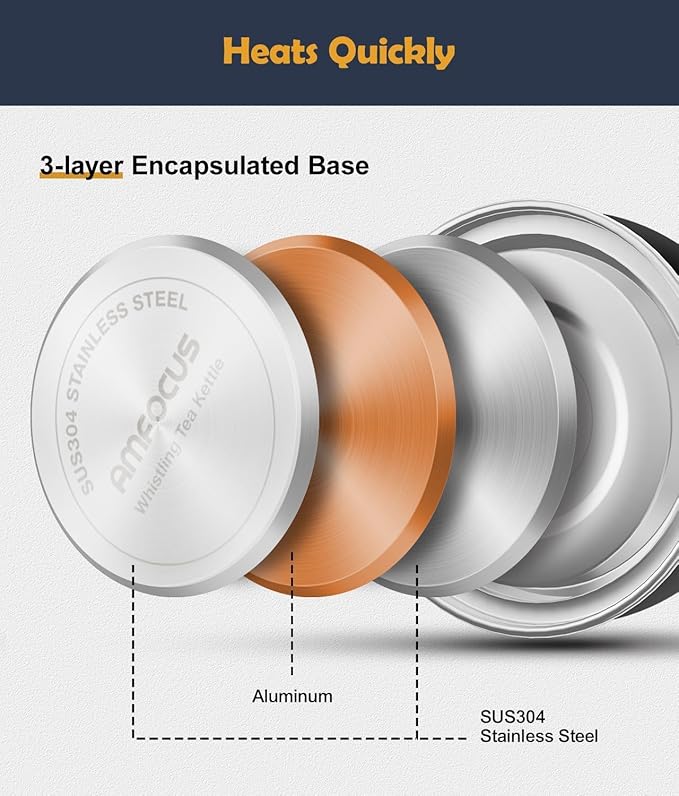 - ✔Loud Whistling Teapot: Our whistling tea kettle have loud & automatic vivid whistles, which will catch your attention when you focus on housework,movies,cooking in next door. It prevents you from forgetting to turn off the stovetop that causing water to be boiled dry or over-boiling.(NOTE: Pls keep the water level is below the spout of the kettle to ensure that the whistle is working properly.)
