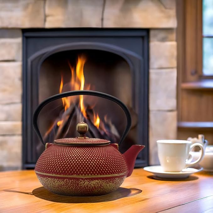 - The cast iron kettle have a removable stainless steel mesh infuser for steeping loose leaf teas.