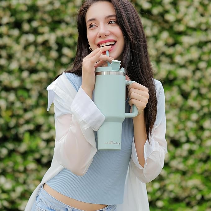 40oz Tumbler with Handle,Double Wall Vacuum Reusable Stainless Steel Insulated Water Bottle,With Leak Proof lid and Straw for Iced or Cold Beverages (Blue Haze)