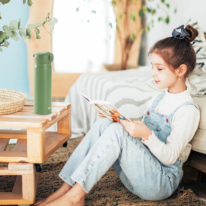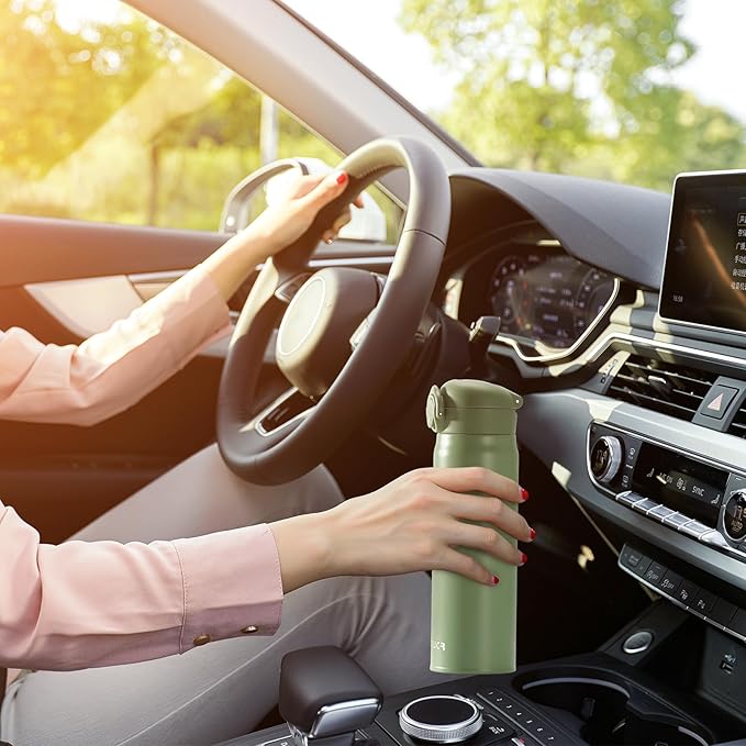 17 oz / 500 ml Insulated Water Bottle, Stainless Steel Thermo Coffee Travel Mug, Thermal Cup with Snap Flip Lid, BPA Free for Hot and Cold Drinking, Green