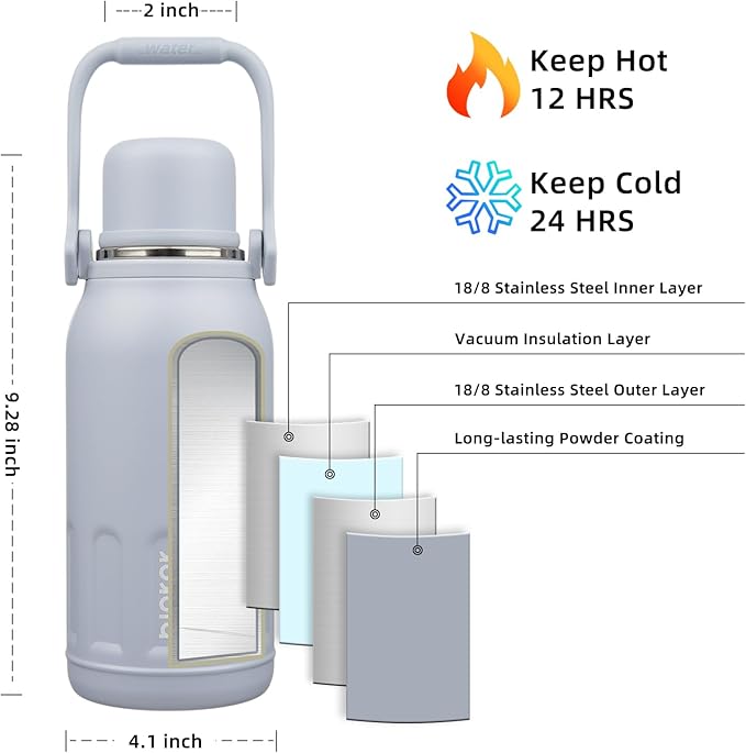 BJPKPK Vacuum Insulated Thermal Water Bottle with Handle and Lid 40oz Stainless Steel Water Bottles for Cold and Hot Beverages,Blue Haze