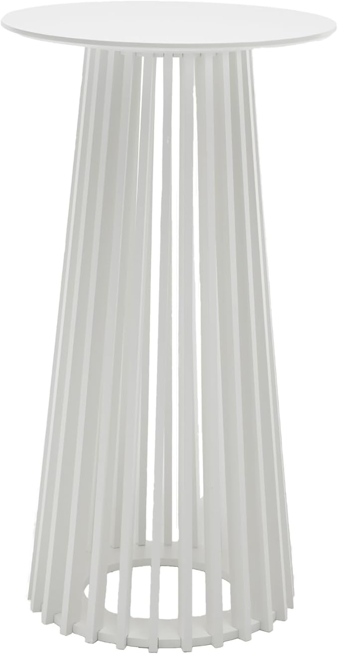DUOMAY White Round Bar Table, 43.5" High Wood Bar Table with Stylish Geometric Base, Modern Style Cocktail Tables for Parties, Kitchen, Dining Room, Coffee Shop