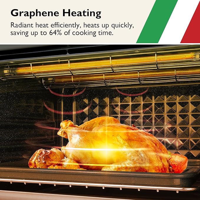 - [Next-Level Heating with Graphene Technology] Experience faster, more even cooking thanks to the advanced graphene heating element. This energy-efficient technology reaches optimal temperatures 64% quicker than traditional ovens while maintaining precise control for perfect results every time.