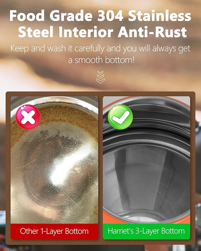 - Three layer base enhances heat retention and durability: Professional grade 18/8 stainless steel construction with triple layer base prevents rust and leaks; Uniform heat circulation ensures rapid boiling on gas, induction or electric stoves; Medium heat setting below 1400W recommended for induction compatibility