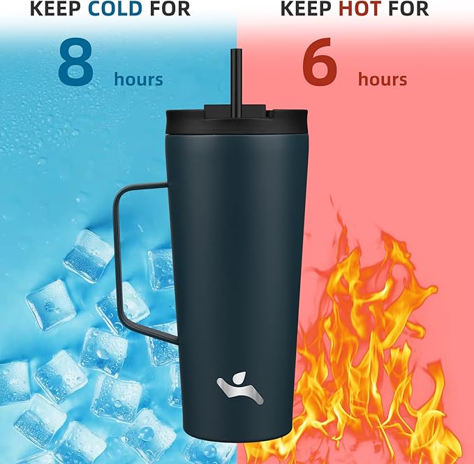 Insulated Tumbler with Handle and Straw, 22 OZ Travel Coffee Mug Stainless Steel Cup Metal Water Bottle,Navy Blue