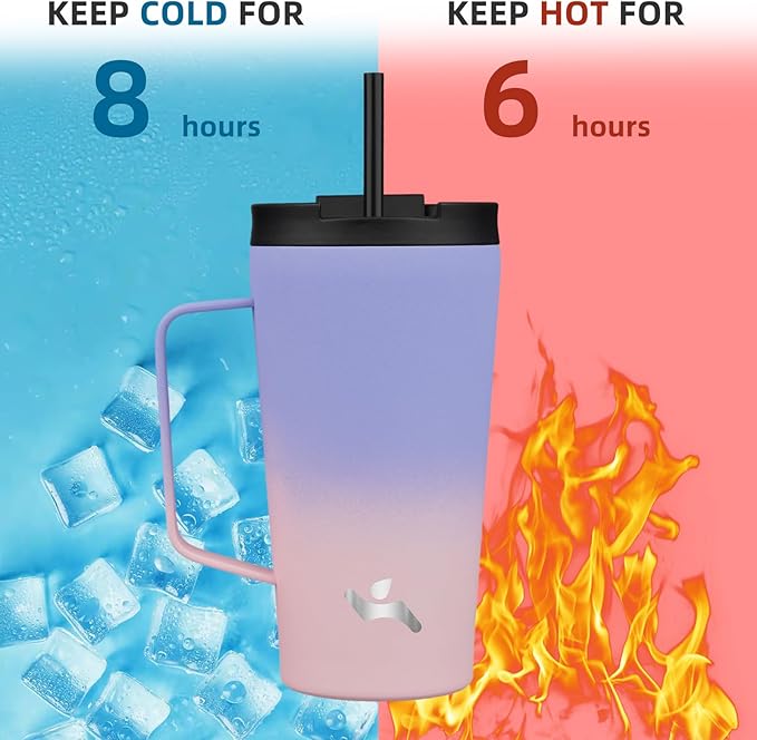 - The tumbler with and and straw is made of food grade stainless steel, double wall vacuum insulation keeps drinks cold for up to 8 hours and hot for up to 6 hours