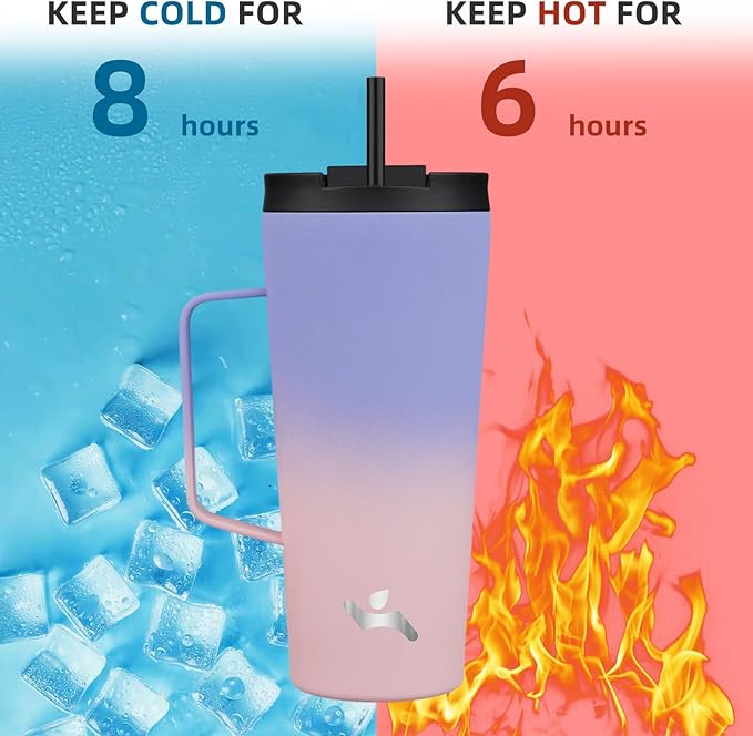 - The tumbler with and and straw is made of food grade stainless steel, double wall vacuum insulation keeps drinks cold for up to 8 hours and hot for up to 6 hours