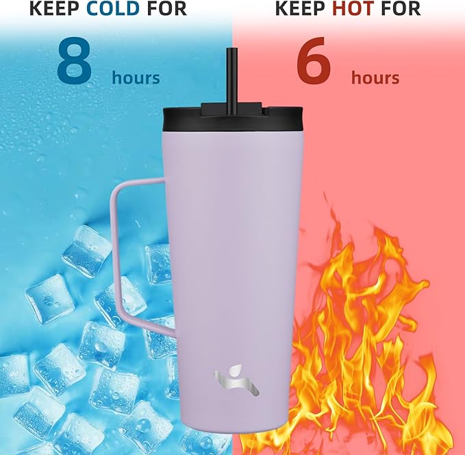 Insulated Tumbler with Handle and Straw, 22 OZ Travel Coffee Mug Stainless Steel Cup Metal Water Bottle,Taro