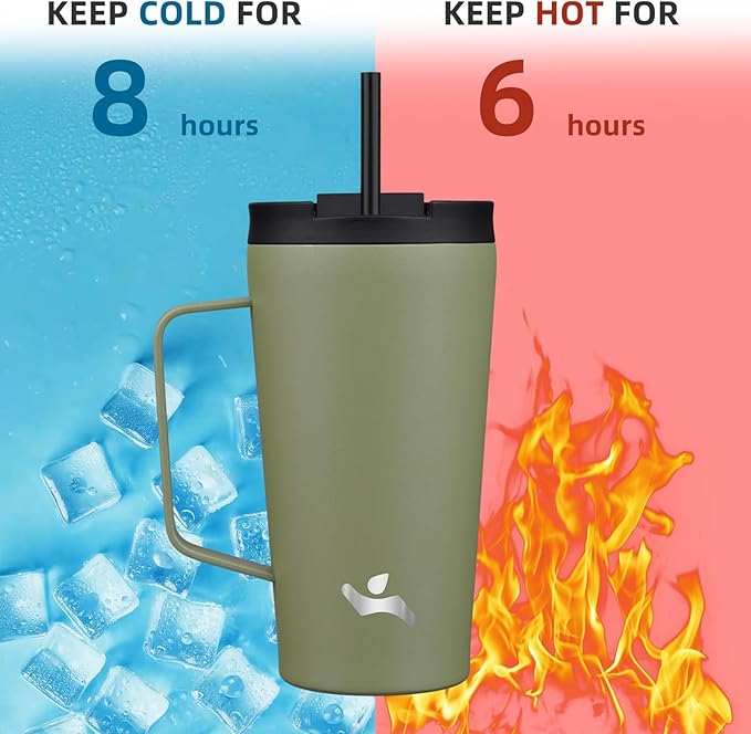Insulated Tumbler with Handle and Straw, 18 OZ Travel Coffee Mug Stainless Steel Cup Metal Water Bottle,Camp Green