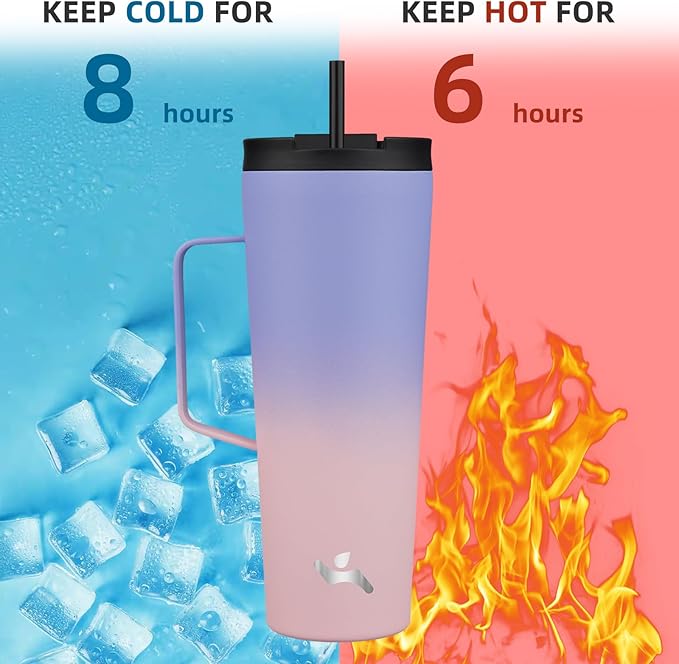 Insulated Tumbler with Handle and Straw, 26 OZ Travel Coffee Mug Stainless Steel Cup Metal Water Bottle,Pastel Sunset