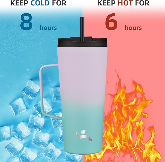 - The tumbler with and and straw is made of food grade stainless steel, double wall vacuum insulation keeps drinks cold for up to 8 hours and hot for up to 6 hours