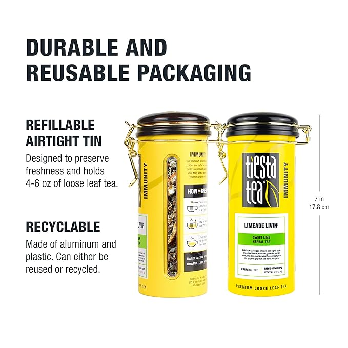 - BREWS 40-50 CUPS: Each refillable tin of Tiesta Tea's Sweet Lime Herbal Tea provides enough loose leaf tea to brew 40-50 cups. Perfect for daily enjoyment or sharing with friends, this generous amount ensures you can indulge in the delightful grape and fruit flavors whenever you desire.