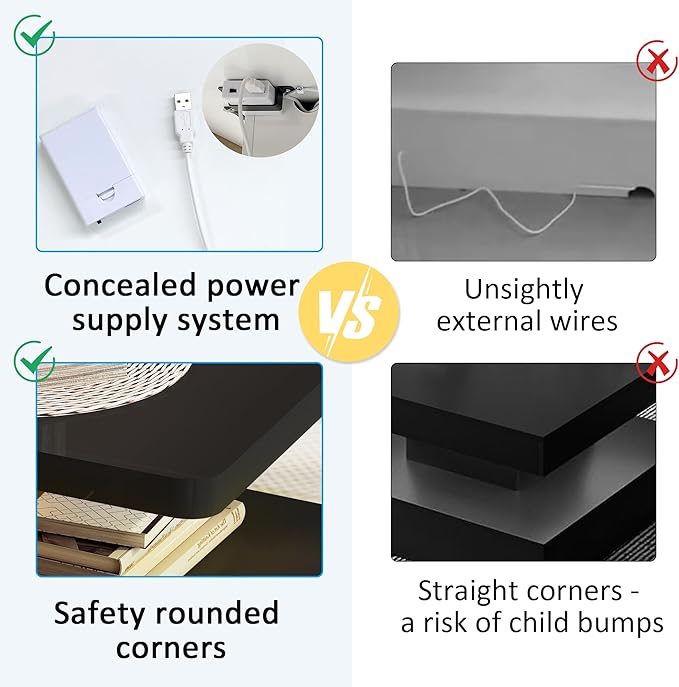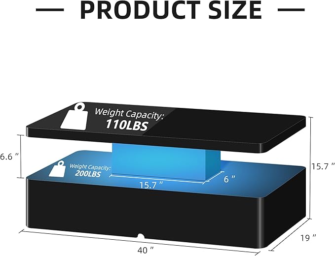 - ADJUSTABLE LED LIGHTS: This coffee table is equipped with LED strip lights and remote control, 16 colors variable and 4 flashing modes, low power consumption and stable performance, bring your living room warm & romantic or dynamic & hot vibe.