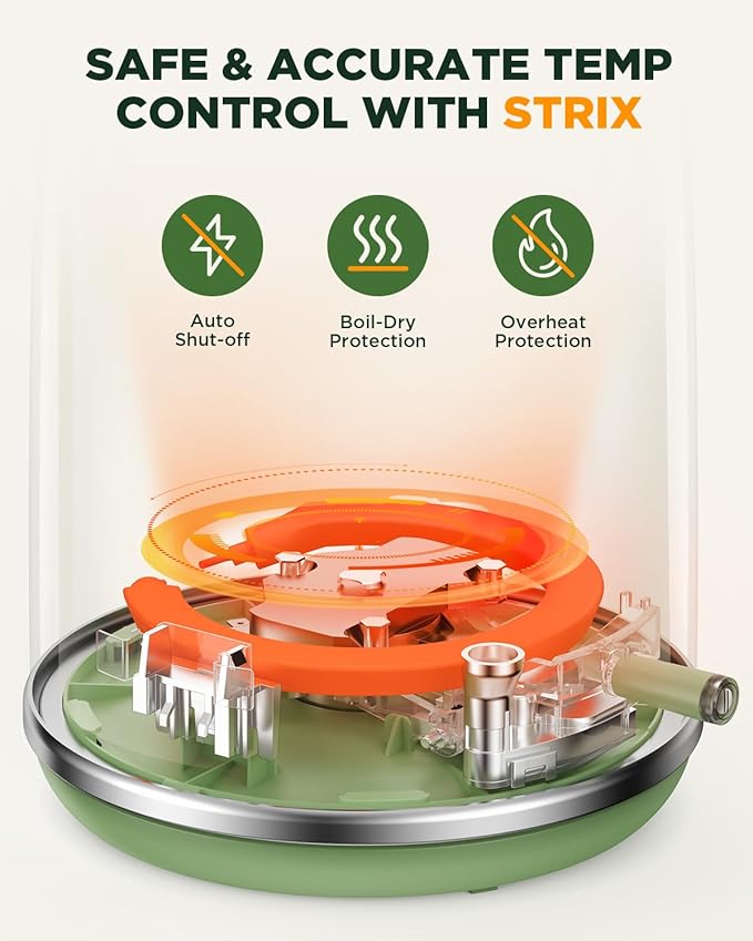 - COMPLETELY SAFE: With powerful STRIX thermostat technology, the water heater has auto shut-off and dry-boil protection technology that ensures water is fully boiled and shuts off when the water is boiled or there is no more water in it. And the handle stays cool to ensure safe handling and prevent burns