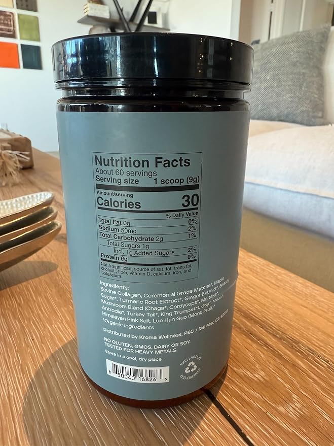 Kroma Beauty Matcha Latte Powder 17.75oz, 503g, 60 Servings – Ceremonial Grade Japanese Matcha Green Tea with Collagen, Ginger, Turmeric & Adaptogenic Mushrooms for Daily Wellness & Rituals