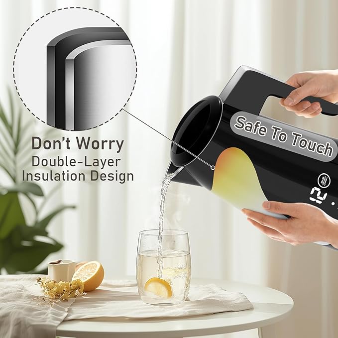 - 【Energy-Saving & Safe Materials】Made with 304 stainless steel and BPA-free materials, this electric kettle is eco-friendly, durable, and safe for daily use.