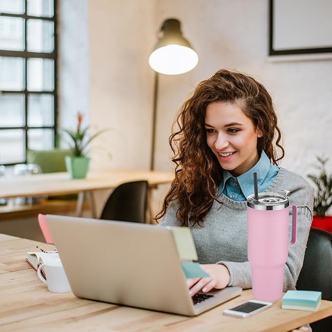 HASLE OUTFITTERS 40 oz Stainless Steel Tumbler with Handle, Vacuum Insulated Tumblers Bulk, Reusable Double Wall Travel Coffee Mug, Durable Powder Coated Water Bottle(Pink, 1)