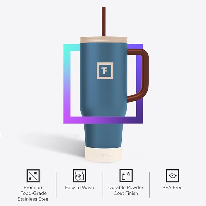 IRON °FLASK Co-Pilot Insulated Mug w/Boot, Straw & Flip Cap Lids - Cup Holder Bottle for Hot, Cold Drink - Leak-Proof - Water, Coffee Portable Travel Mug - Cream & Berries, 40 Oz