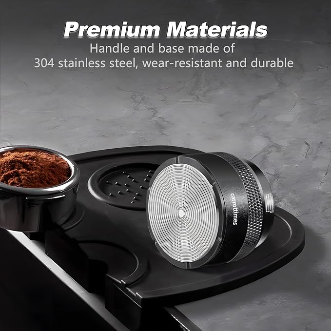 - 【Consistent Pressure】: The tamper tool espresso features a built-in spring loaded mechanism for precise pressure control up to 30 lb, ensuring a firm compress of coffee grounds. This enhances extraction stability and makes tamping effortless and efficient.