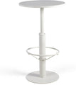 - [Simple Design] The breakfast table is made of metal, indicating durability and stability. Painted in a uniform white, it stands out as a unique piece of furniture that can add a pop of color to the space. The snack table has a circular tabletop, supported by a central column, with an attached circular ring partway down the column. This ring is possibly for structural support or additional functionality.The base is circular and flat, providing stability.