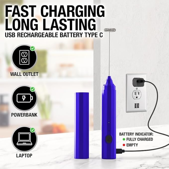 Zulay Kitchen FrothMate Powerful Milk Frother Portable & Compact Handheld Foam Maker Lattes, Cappuccinos (Royal Blue, Froth N Go)