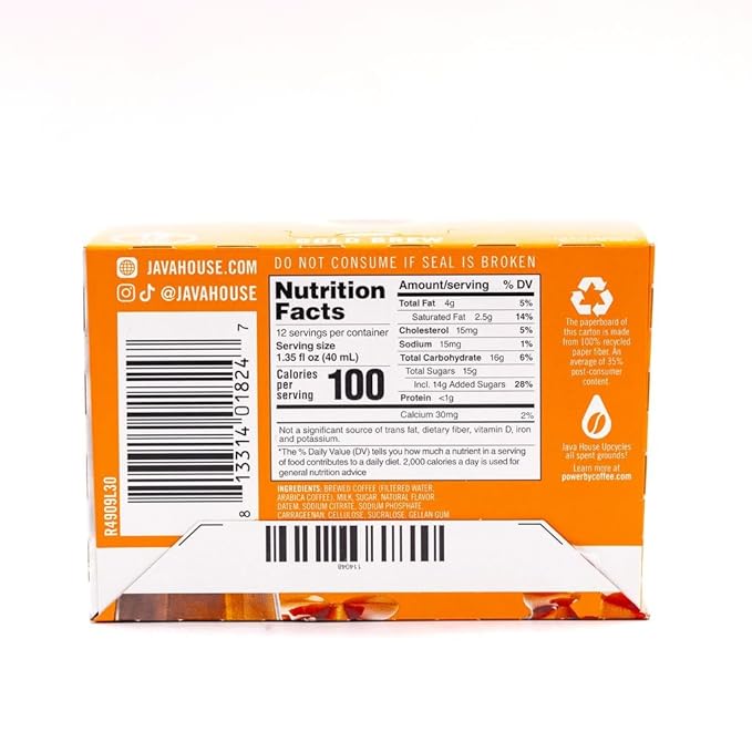 JAVA HOUSE Salted Caramel Latte Cold Brew Coffee Pods, (12 Count) Peel and Pour Pods Hot or Iced