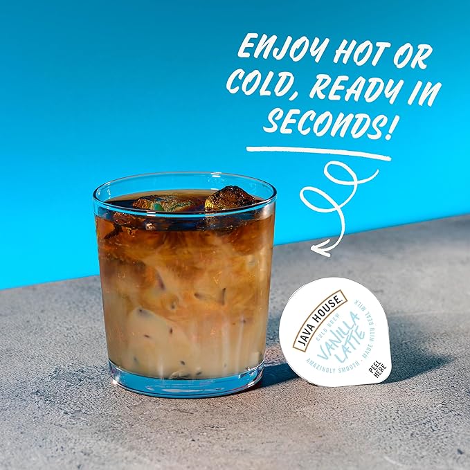 JAVA HOUSE French Vanilla Latte Cold Brew Coffee Pods, (48 Count) Peel and Pour Pods Hot or Iced