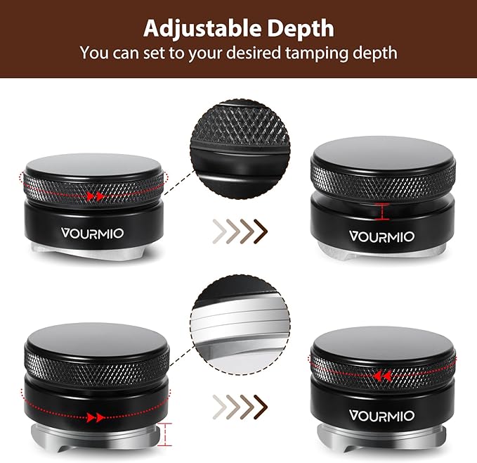 - ADJUSTABLE HEIGHT FOR PRECISION - This coffee leveler is equipped with an adjustable height feature via a screw mechanism, allowing you to set the perfect level for various doses and baskets. Easily customize your coffee distribution by rotating the middle rim counterclockwise